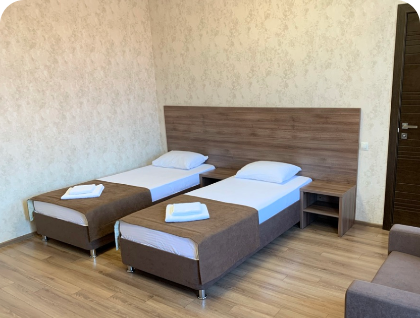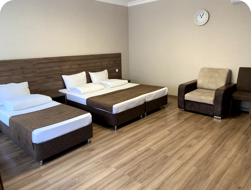 Отличная гостиница где можно покушать и хорошо поспать) номер с отдельным входом на улице около которого можно поставить машину, есть все необходимое для ночлега, тапочки, шампунь, гель, кондиционер с обогревом, хороший матрац и подушки, отлично выспались всей семьёй. Кафе и кухня впечатлили ещё больше, по умеренным ценам красивая подача, завтрак был очень вкусным и входил в стоимость номера, вечером поужинали вчетвером всего на 800 рублей) еда по типу столовой, и очень вкусная! Для детей есть стульчик, уголок для рисования, также в кафе брали свежевыжатые соки. Все работники очень вежливые, спасибо за гостеприимство!